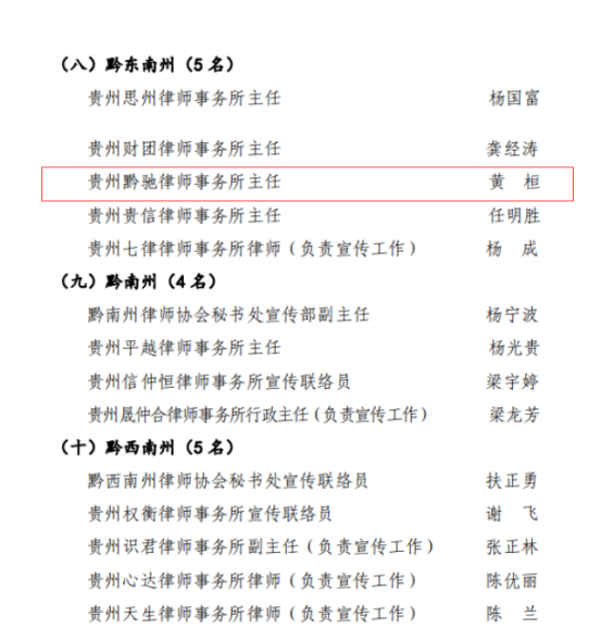 祝賀!貴州文泰律師事務所黃(huáng)桓主任榮獲全省律師(shī)行(xíng)業(yè)宣傳“工(gōng)作(zuò)先進個(gè)人(rén)”