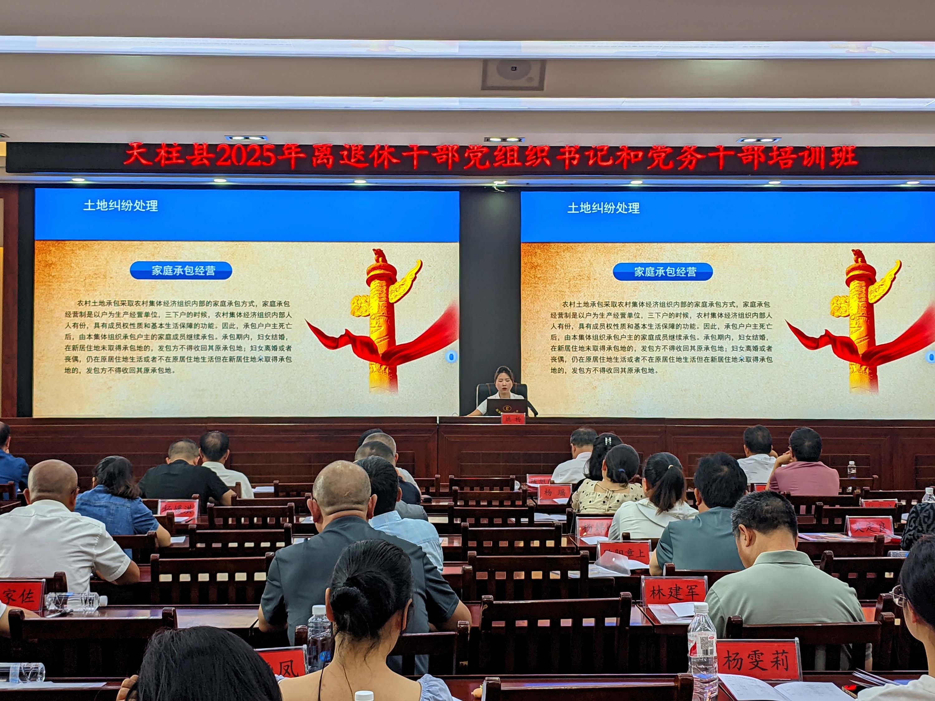 2025年(nián)6月(yuè)17日(rì),貴州文泰律師事務所姚楊律師(shī)受邀到(dào)天柱縣委黨校(xiào)為(wèi)《₹天柱縣2025年(nián)離(lí)退休幹部黨組織書(shū)記和(hé)黨務幹部培訓班》上(shàng)法治專題宣講課。